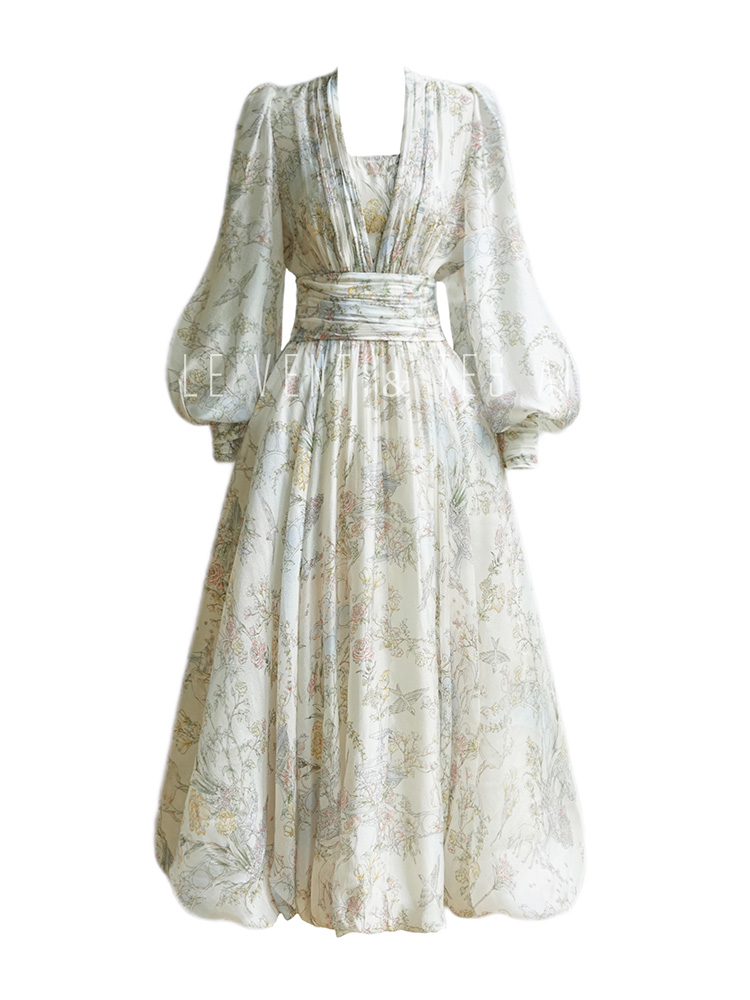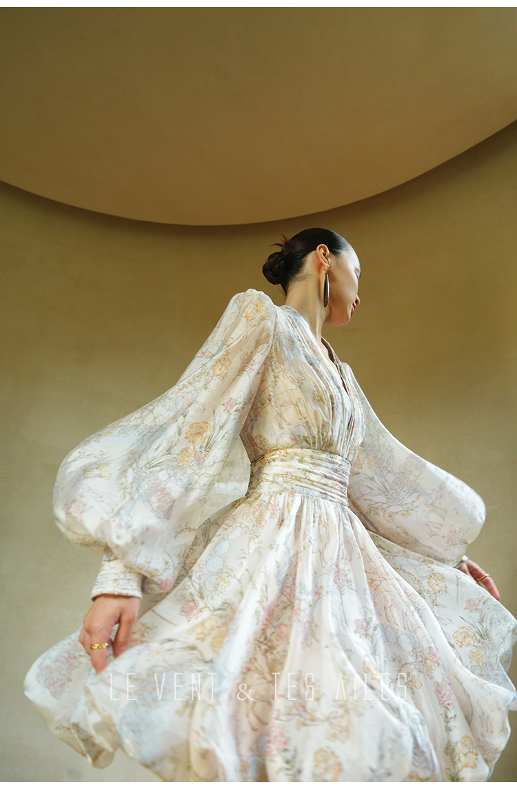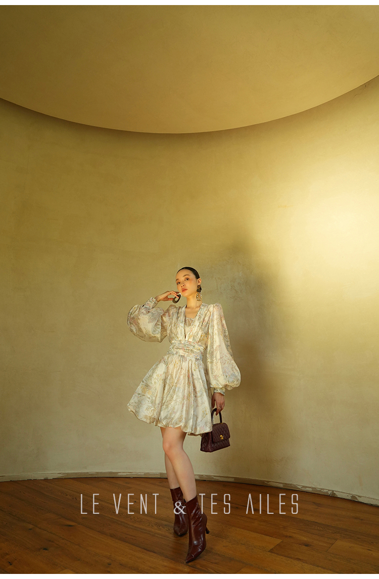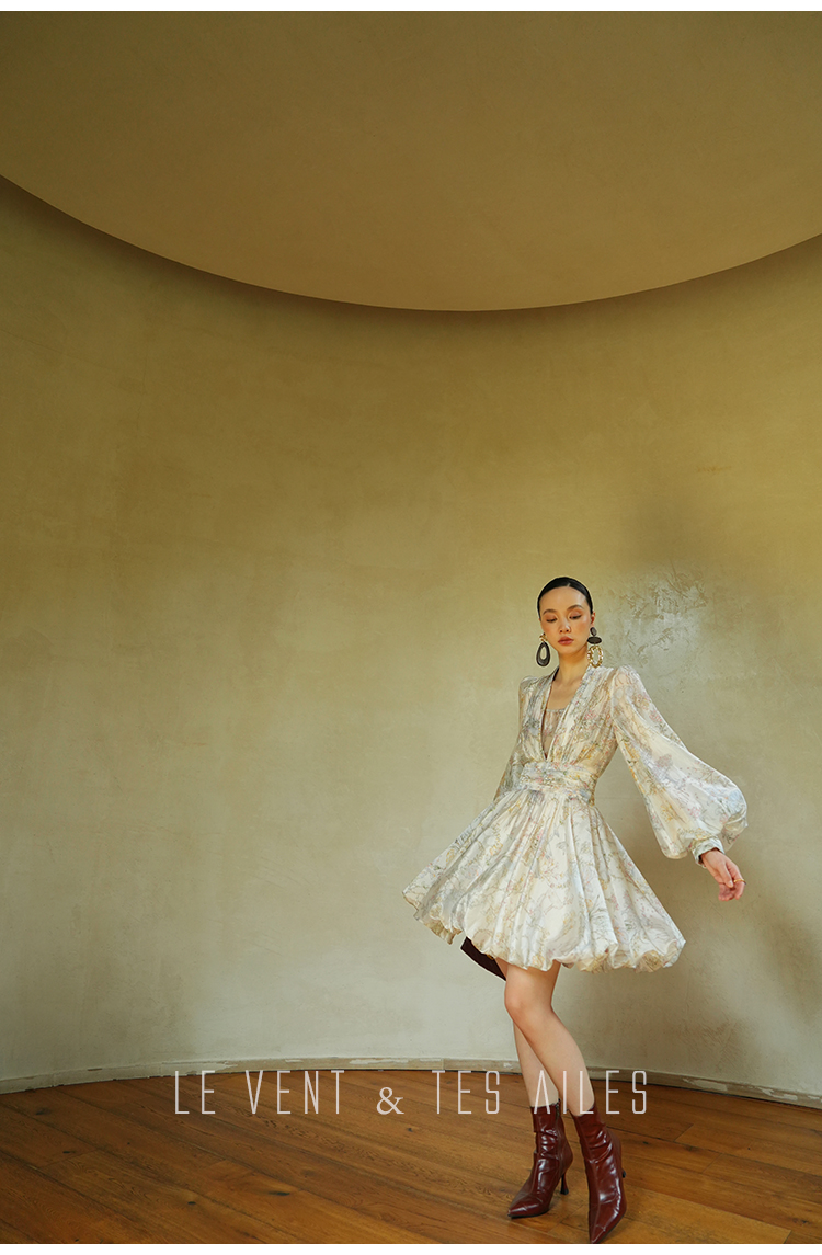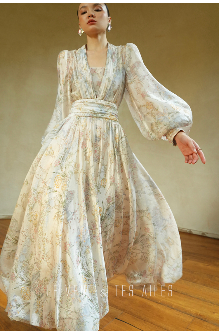 LE VENT&TES AILES V-Neck Resort Style Long Sleeve Dress