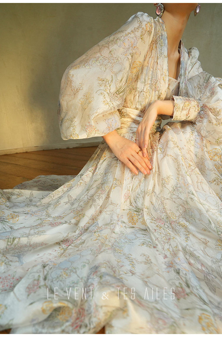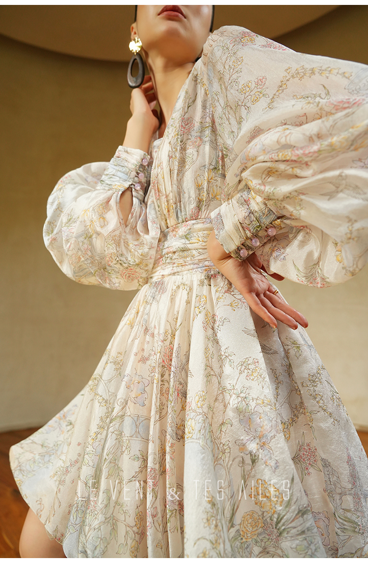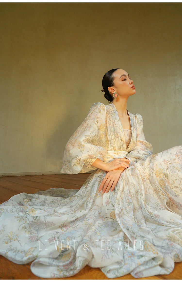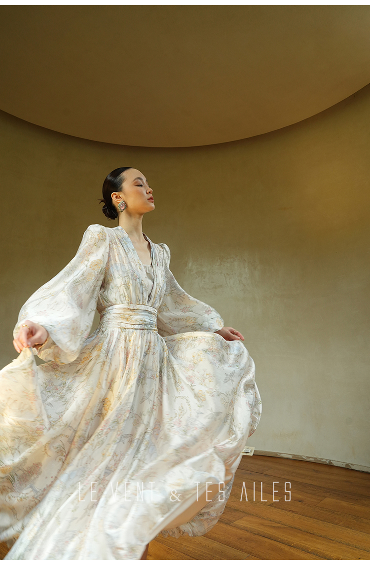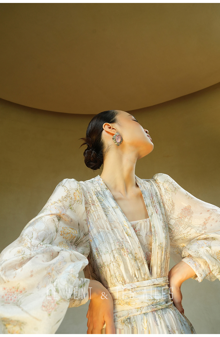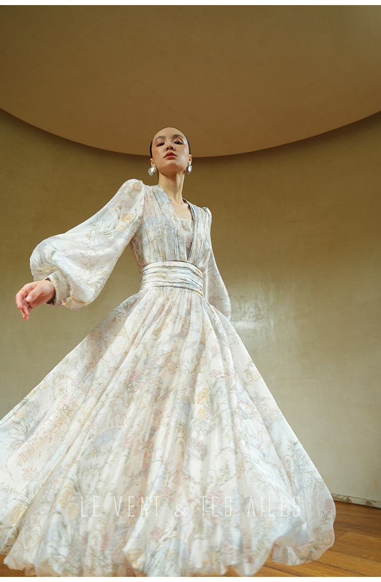 LE VENT&TES AILES V-Neck Resort Style Long Sleeve Dress