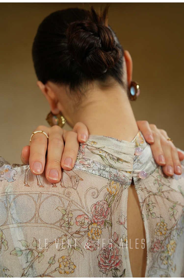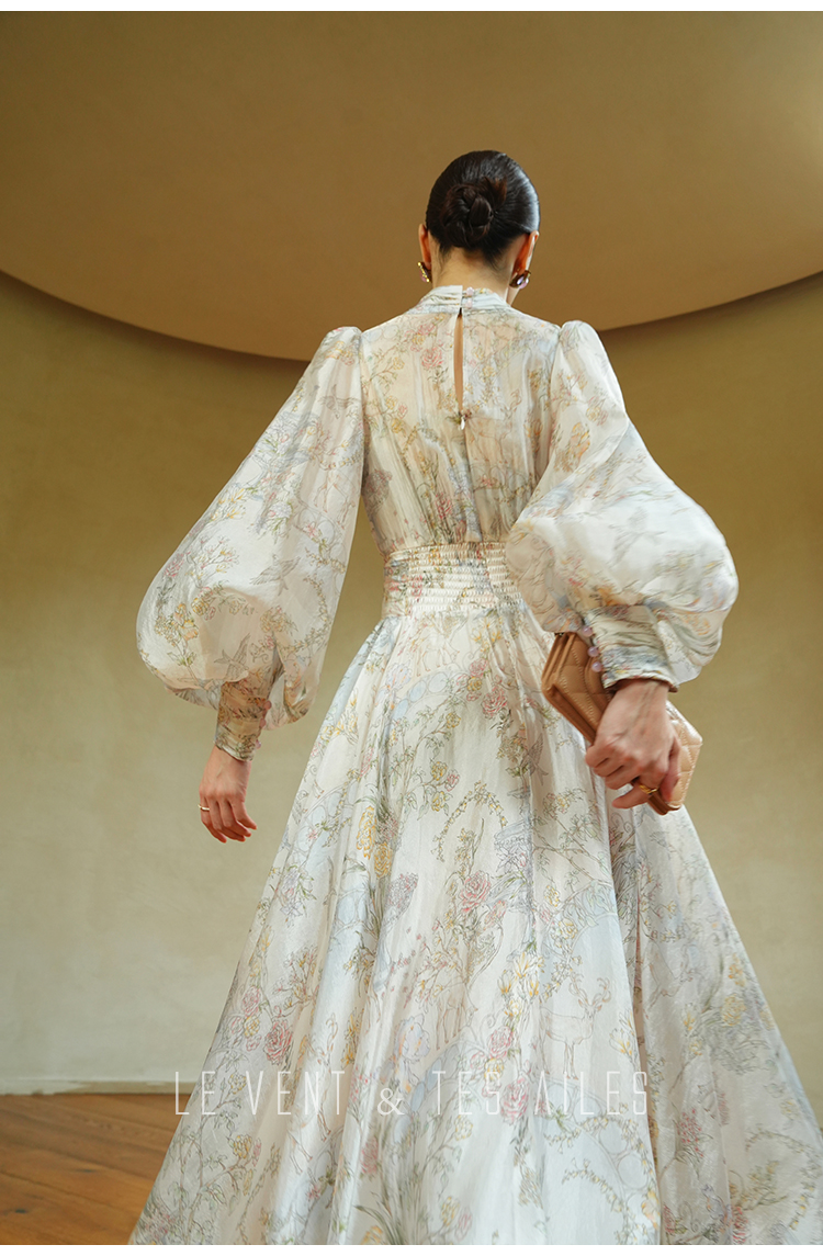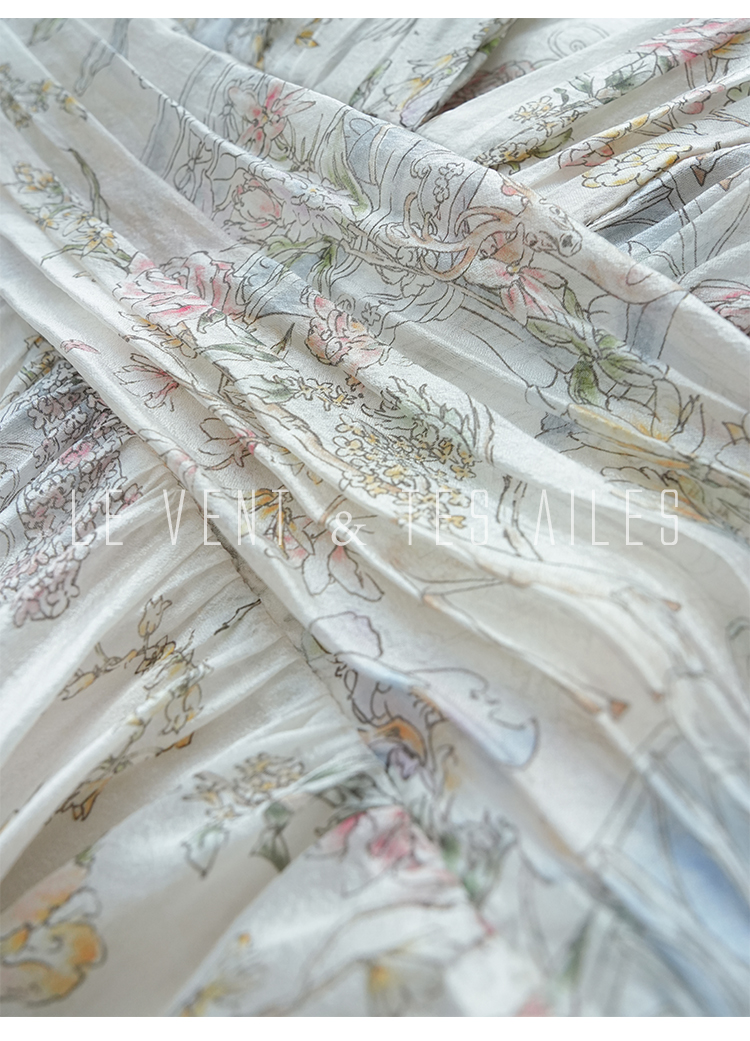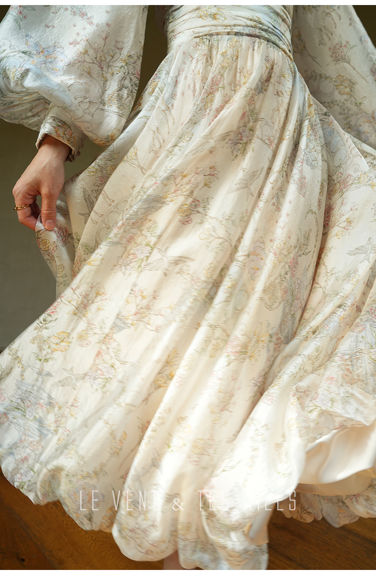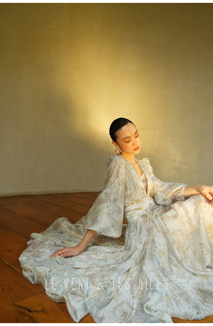 LE VENT&TES AILES V-Neck Resort Style Long Sleeve Dress