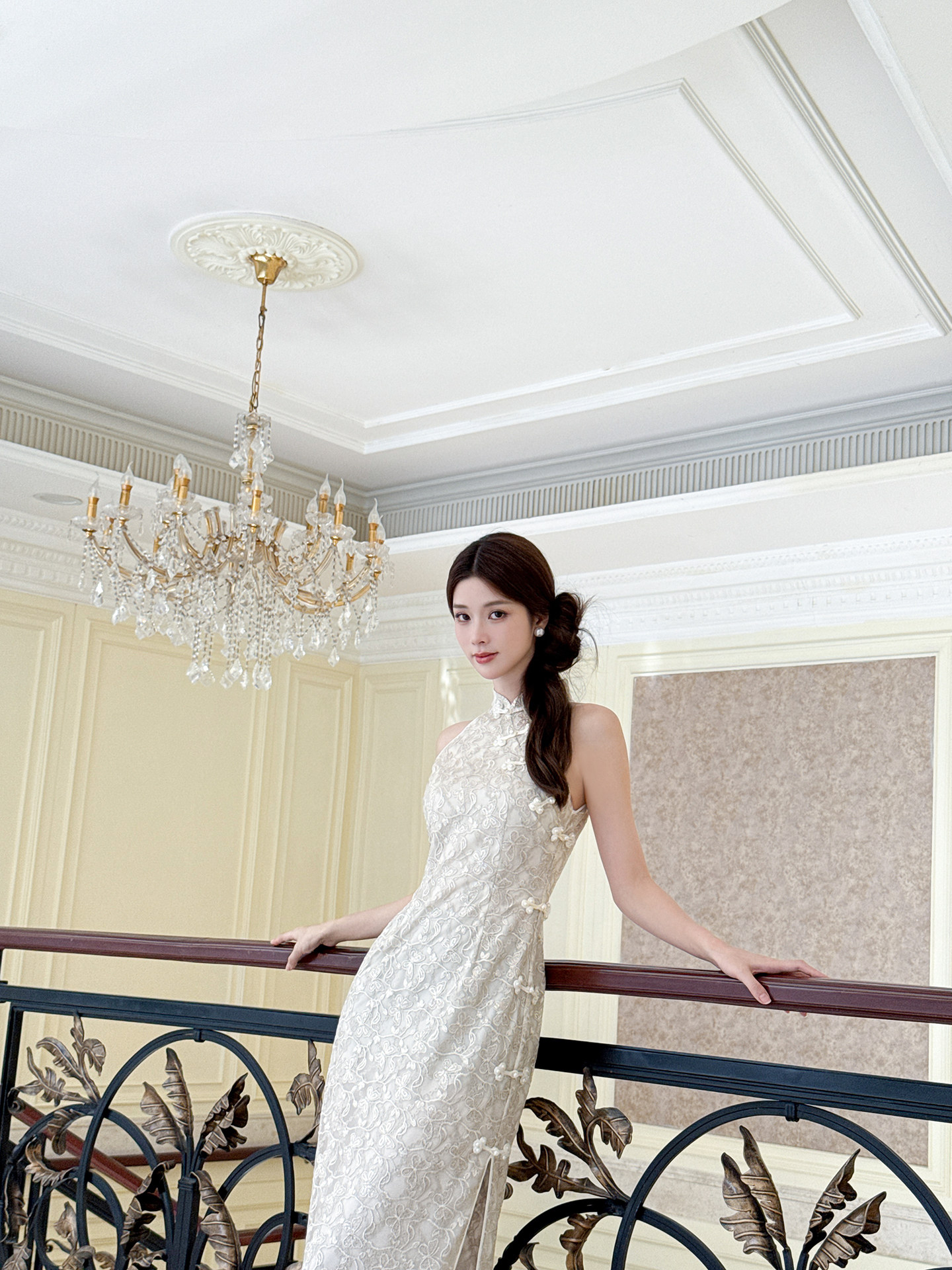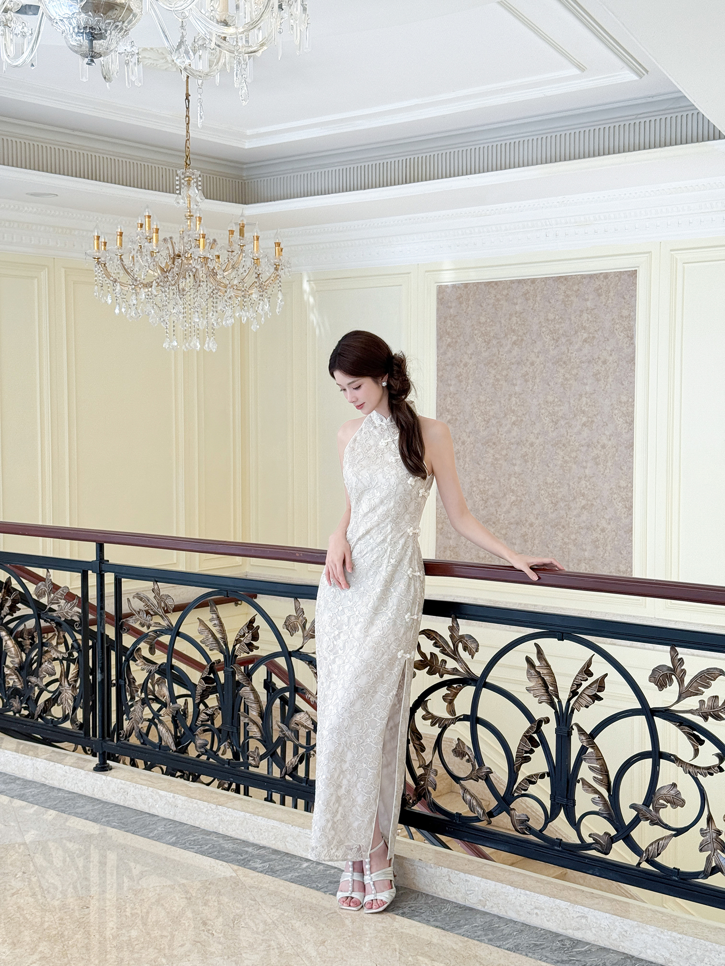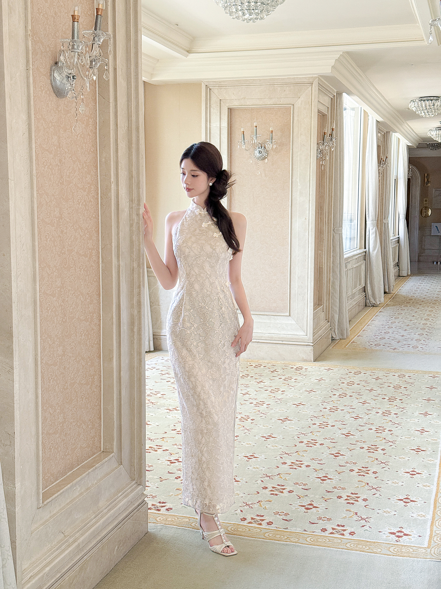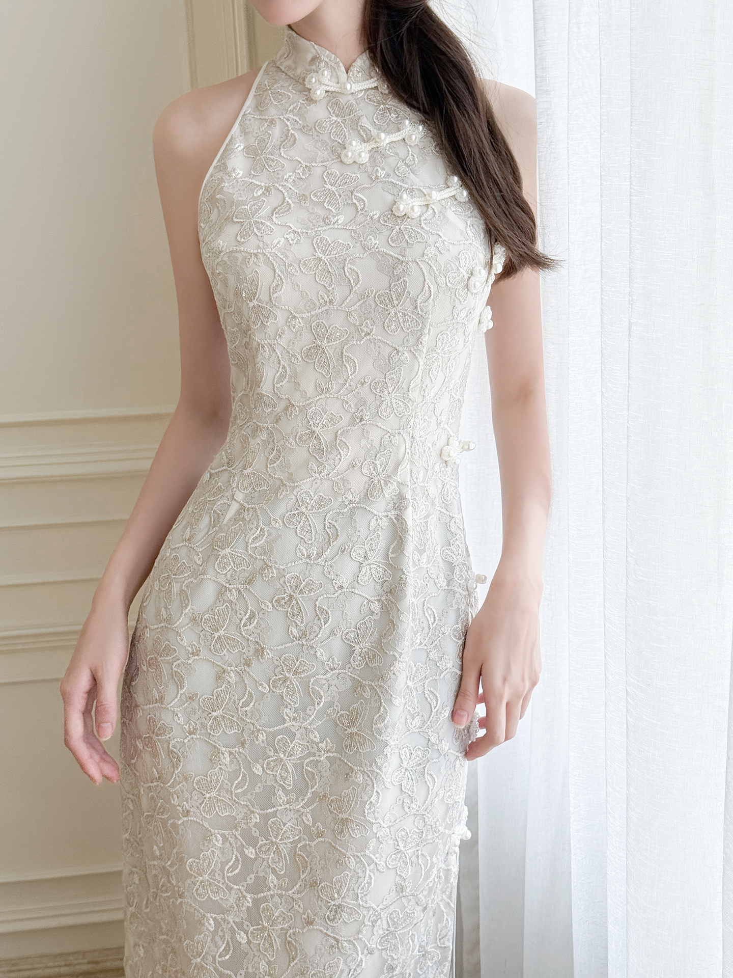 XIAOLI Halterneck Light Grey Chinese Style Dress
