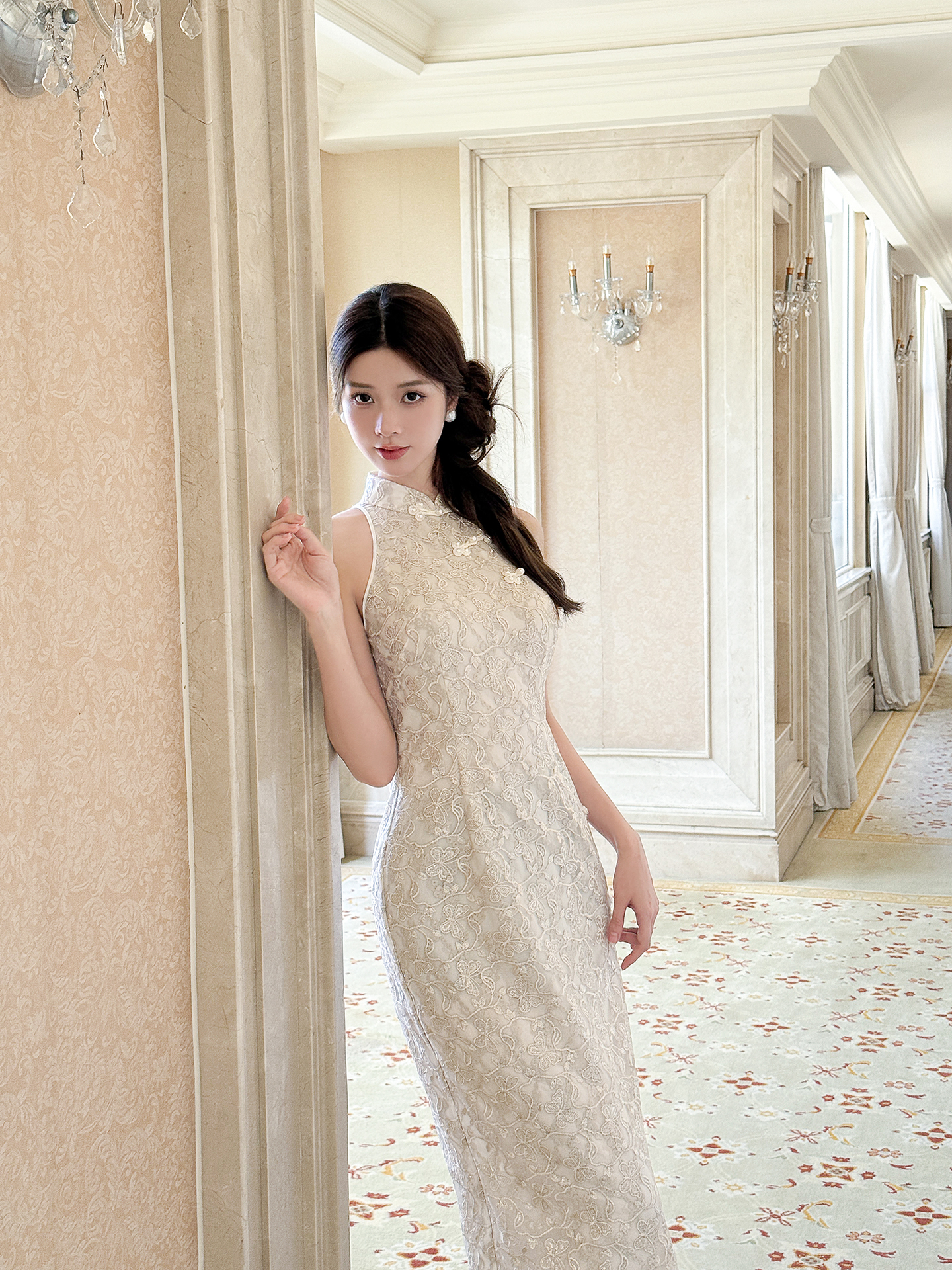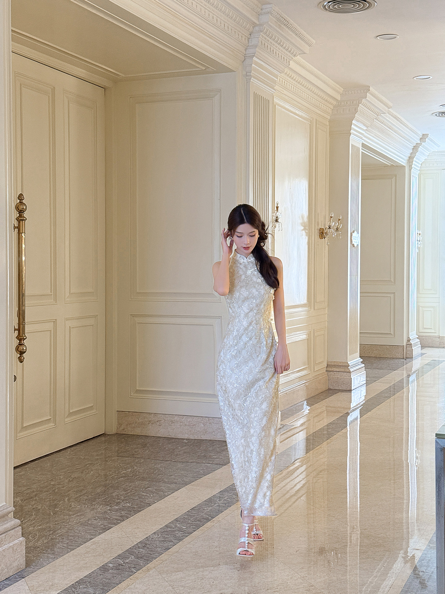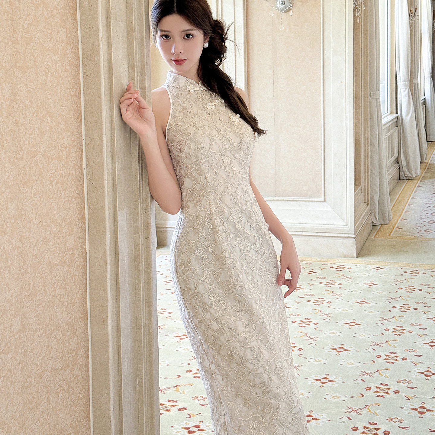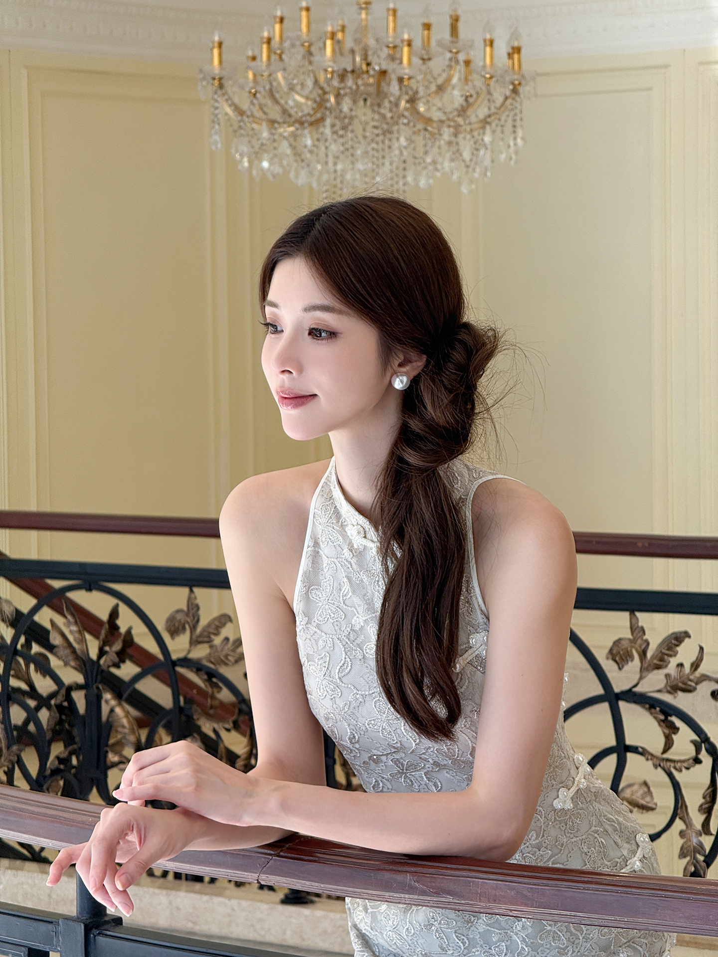 XIAOLI Halterneck Light Grey Chinese Style Dress