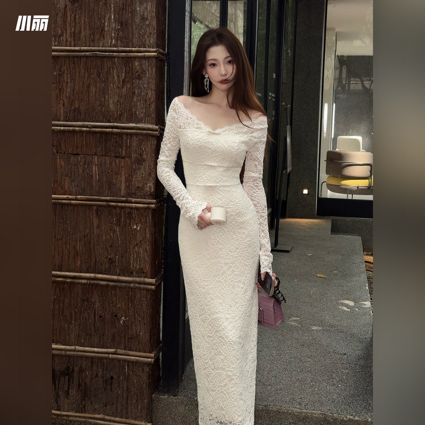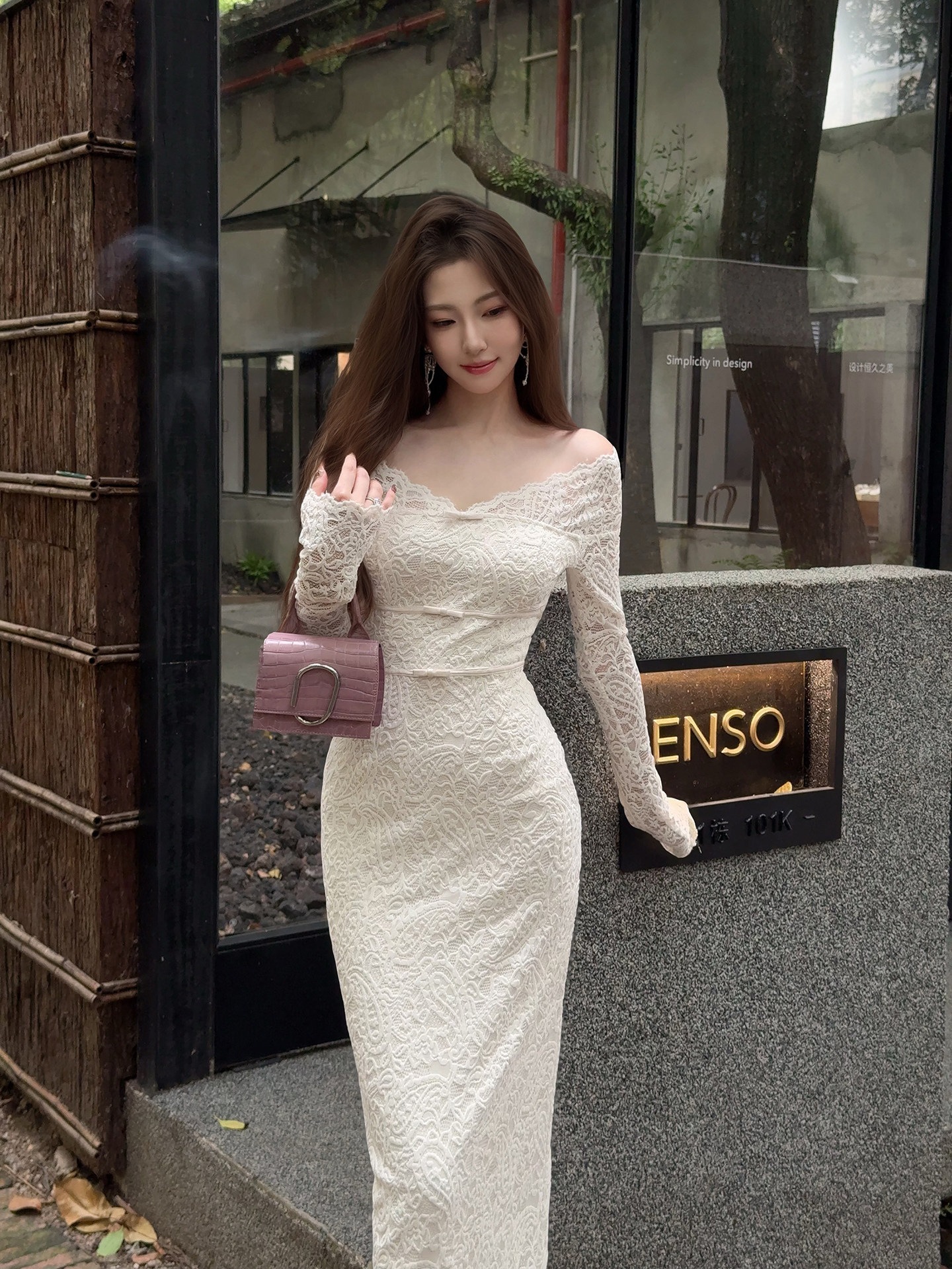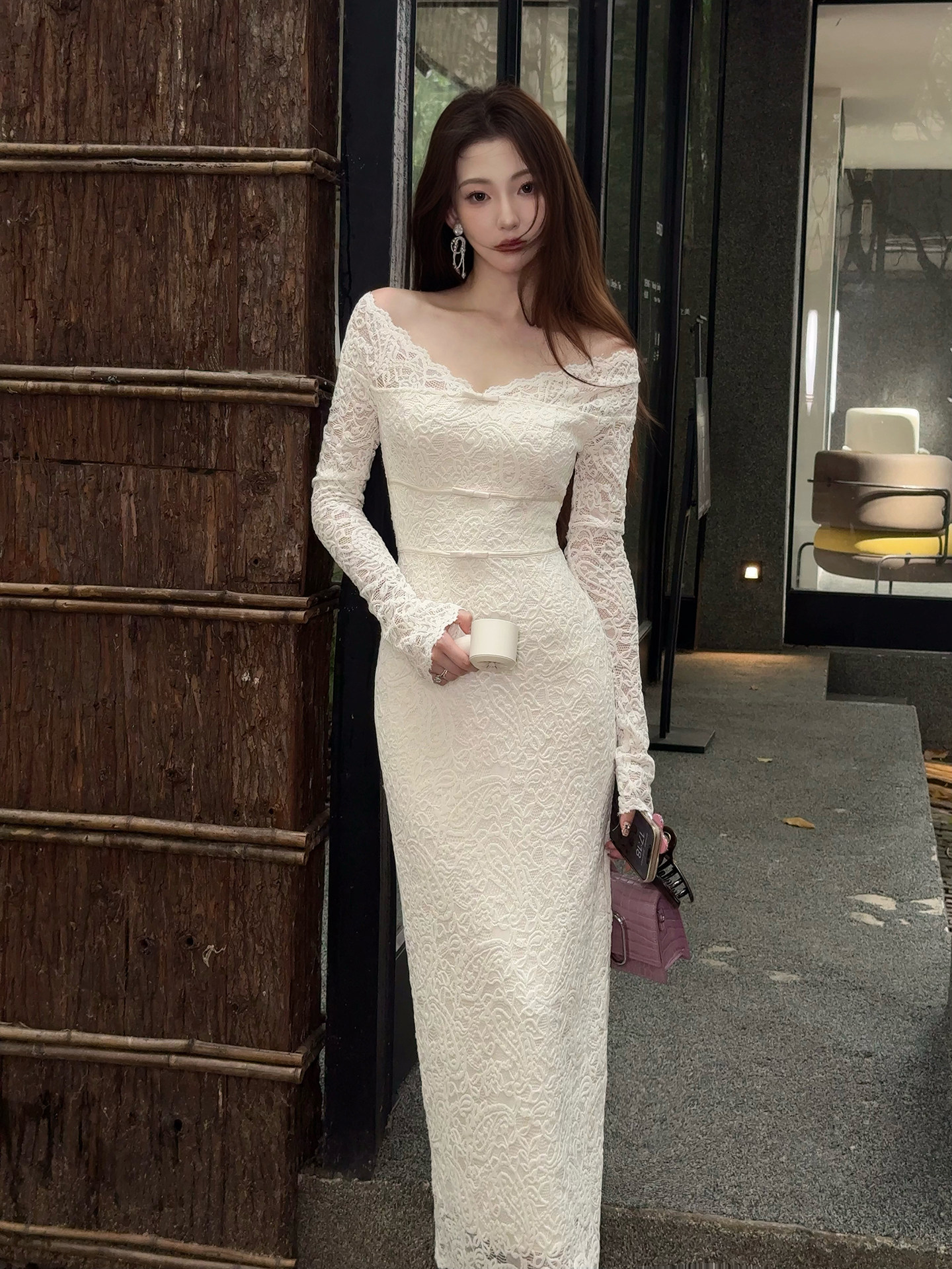XIOALI White V-Neck Long Sleeve Bodycon Dress